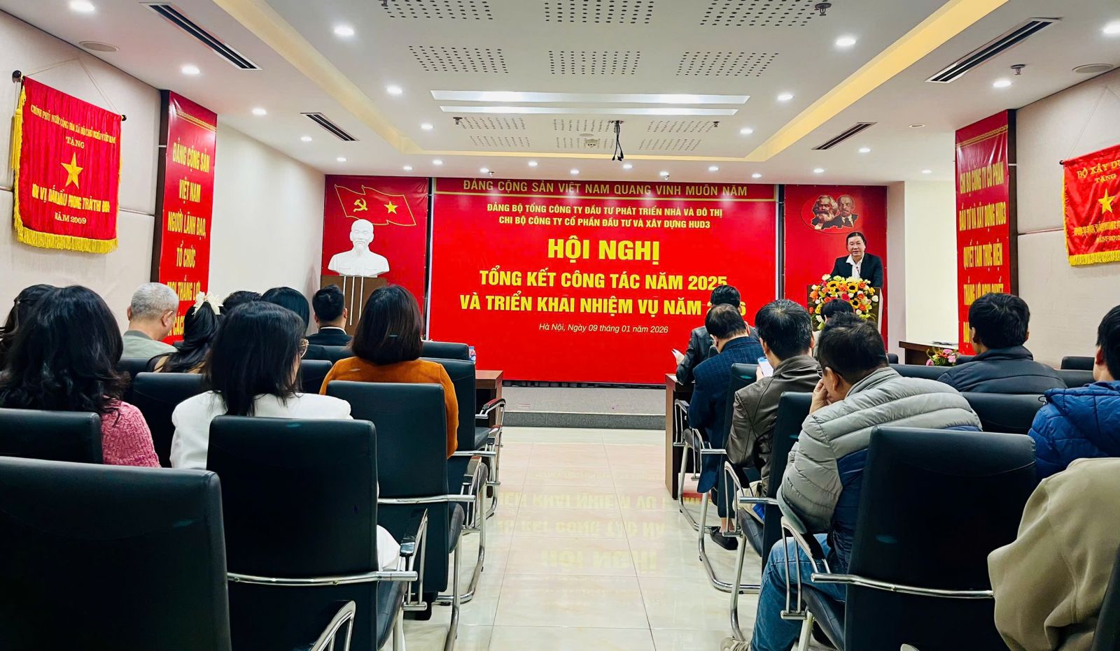 Hội nghị tổng kết công tác năm 2025, triển khai nhiệm vụ năm 2026 của Công ty HUD3 đã diễn ra trong không khí nghiêm túc, trách nhiệm và đoàn kết. Kết quả Hội nghị là cơ sở quan trọng để Chi bộ và Công ty HUD3 tiếp tục phát huy những kết quả đã đạt được, khắc phục khó khăn, quyết tâm hoàn thành tốt các mục tiêu, nhiệm vụ năm 2026 và các chỉ tiêu của nhiệm kỳ 2025–2030.