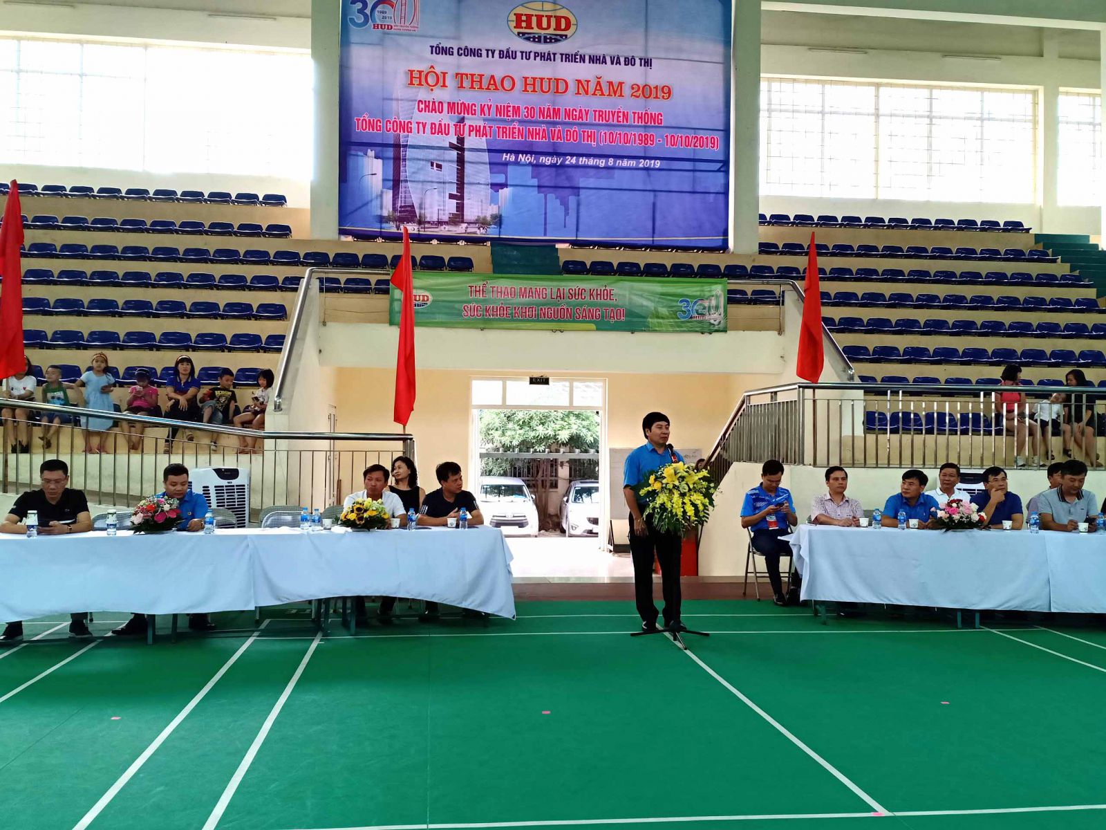 Tại lễ khai mạc, Chủ tịch Công đoàn Đặng Hồng Quang đã chào mừng hơn 300 cán bộ, VĐV, cổ động viên thuộc các đơn vị thành viên tham gia Hội thao Tổng công ty HUD năm 2019. Chủ tịch Công đoàn Đặng Hồng Quang nhấn mạnh: Hội thao HUD 2019 là cầu nối giao lưu, đoàn kết, gắn bó giữa các VĐV, các đội tuyển cũng như các đơn vị, qua đó nâng cao chất lượng đời sống văn hóa, tinh thần và thúc đẩy các phong trào thi đua trong cán bộ, công nhiên viên toàn Tổng công ty, góp phần hoàn thành nhiệm vụ sản xuất kinh doanh năm 2019.