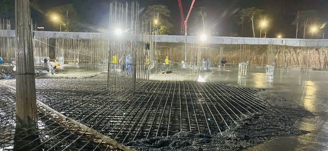 Với tinh thần thi công liên tục ngày đêm, làm việc theo ca kíp, Công ty đã huy động tối đa nguồn nhân lực về nhân sự, máy móc, thiết bị để đẩy nhanh tiến độ, đồng thời vẫn đảm bảo nghiêm ngặt các yêu cầu về kỹ thuật, chất lượng và an toàn lao động. Sau 60 ngày triển khai, toàn bộ phần cọc và móng đã được hoàn thành với khối lượng lớn, bao gồm: